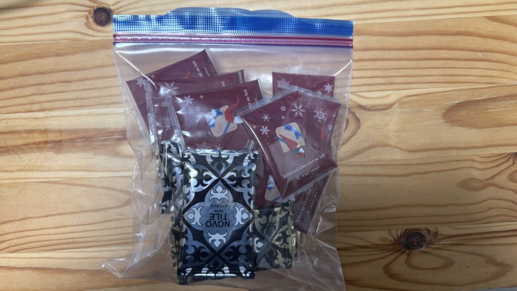 海外旅行に行く時にさっと配れるお菓子を、ジップロックに詰めて持っていきます。